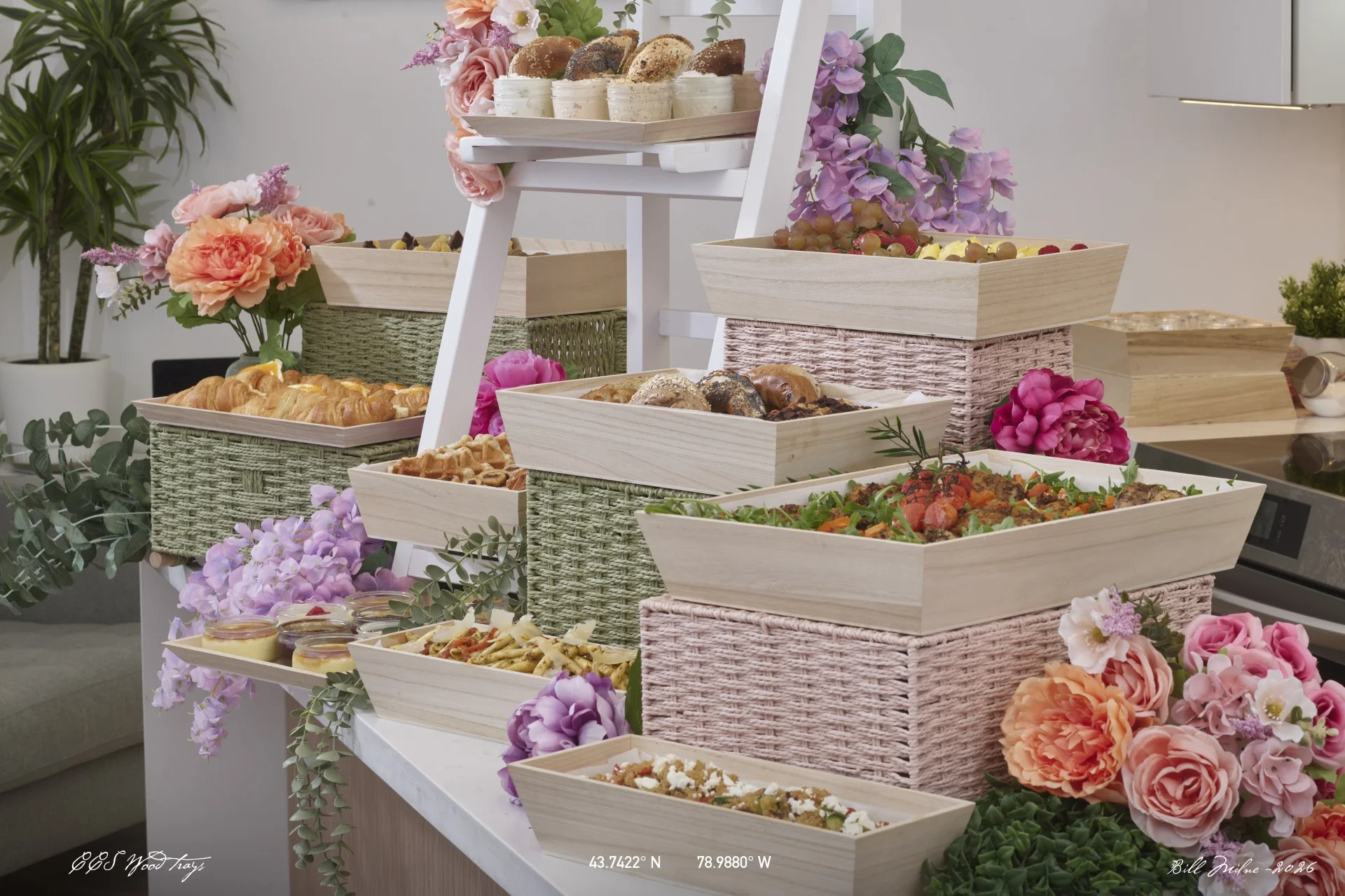 Sturdy but Single-Use: Our wooden catering trays handle hot or cold food with ease. They are extremely durable for the event, yet the client keeps them afterward. You never worry about broken ceramic or lost inventory again.