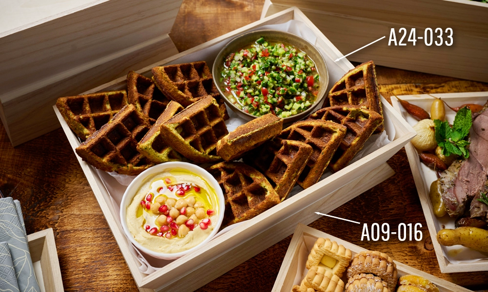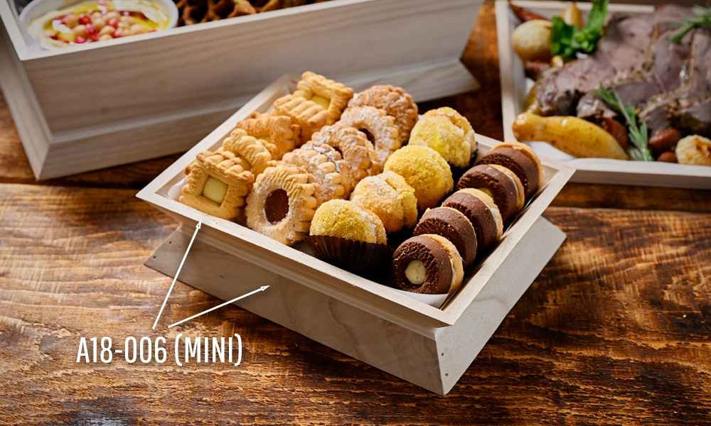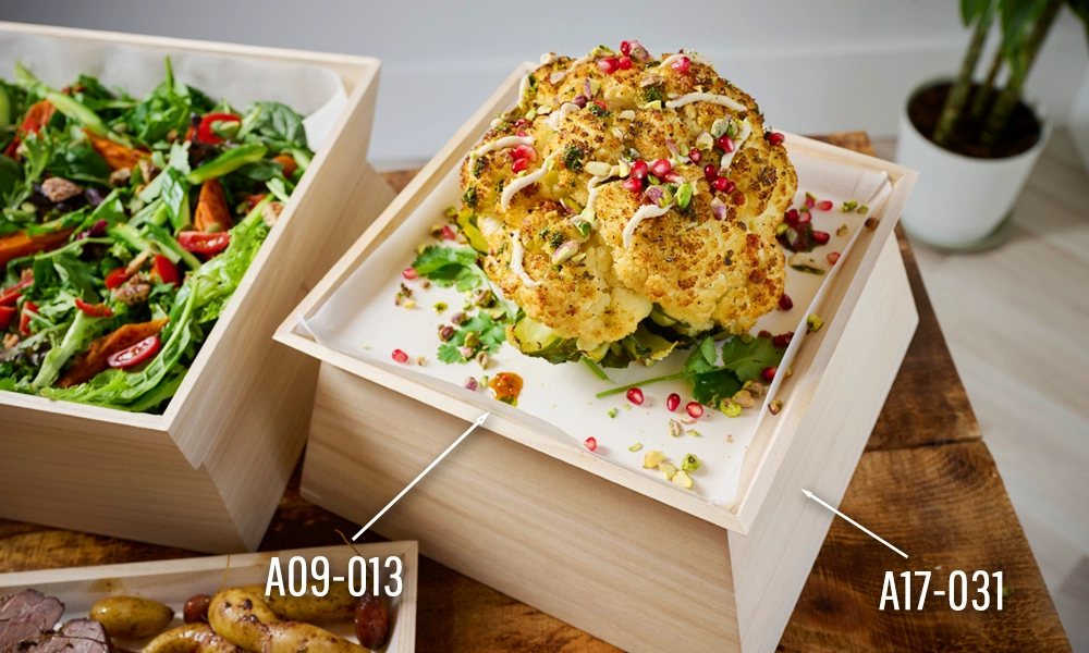 Explore the full line of wood trays to use for risers,  and see how simple it can be to transform your next catering display.